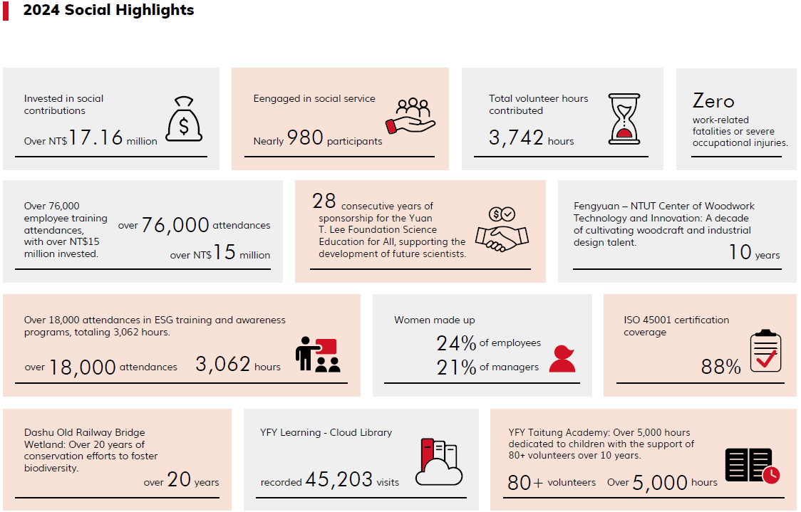 YFY is committed to a "People-Oriented" approach, deeply embracing humanistic care while fostering culture, reading, and learning as core aspects of its social investment strategy. We offer paid volunteer leave and support non-profit organizations through charitable donations of money and materials. Our goal is to build a "symbiotic" relationship with the community, going beyond mere cooperation to include close interaction characterized by mutual assistance and dependence. By harnessing the collective power of our enterprises and communities, we aim to address social issues collaboratively and create sustainable solutions.